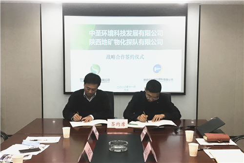 ??? 11月19日,陜西地礦物化探隊有限公司主持工作的黨委副書記、紀委書記李新勝一行,前往中圣公司參觀交流,并簽訂戰略合作協議。中圣公司領導班子成員出席簽約儀式。