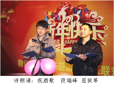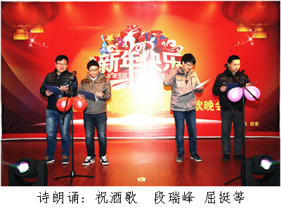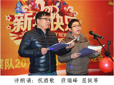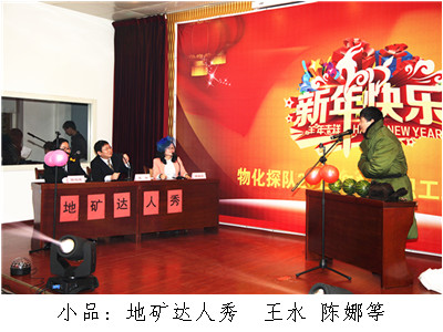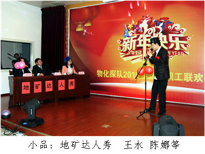 ? ? 元月29日晚,物化探隊舉辦了迎新春職工聯歡晚會,隊長王新坪、書記賀志銀等隊領導與全體干部職工歡聚一堂,共迎新春賀佳節,共敘情誼謀發展。晚會以“神駿回眸豐稔景,羚羊翹首吉祥圖”為主題,在濃濃的笑聲和溫暖的情誼中,告別付出了努力與收獲的2014年,迎接充滿希望的2015羊年的到來。