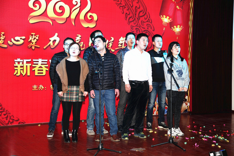 ??? 伴隨著炫動的燈光,激情的音樂,晚會在一支紅紅火火的“開門紅”舞蹈中拉開序幕,來自機關(guān)各科室的近十名青年職工,用熱辣動感的舞步瞬間沸騰了晚會現(xiàn)場,昭示著物化探隊天天開門紅,歡快的旋律、熱情的吶喊,讓晚會變成了一個“歡樂的海洋”,接下來的詩朗誦“新春頌”,表演熱情洋溢,共同祝愿物化探事業(yè)永遠與春天同行!鏗鏘有力的合唱《勘探隊員之歌》,唱出了物化探隊職工為了地質(zhì)事業(yè)砥礪奮進、無私的奉獻的崇高精神。女聲獨唱《謝謝你讓我這么愛你》溫情浪漫,別出心裁的《相信自己》亮出青春、堅定信心,相信2016我們一定能贏,把晚會推向高潮。白林科為晚會助興演唱了《男人哭吧不是罪》,激情的演唱博得了在場觀眾的陣陣掌聲。《父親的草原母親的河》表達了物化探人連續(xù)8年奮戰(zhàn)在內(nèi)蒙古巴丹吉林沙漠的深厚感情,他們真正是地質(zhì)一線的《真心英雄》,《我的好兄弟》唱出了物化探隊青年人的地質(zhì)情、戰(zhàn)友情,《北京頌歌》象征著團結(jié)、凝聚著力量。《眾人劃槳開大船》表現(xiàn)了物化探人齊心合力、堅定信心、開拓創(chuàng)新,贏戰(zhàn)2016 ,走向希望,并將演出再次推向高潮,更是點燃了現(xiàn)場干部職工的熱情,激起了一浪高過一浪的喝彩與歡呼,也給廣大干部職工留下了一段難忘的歡樂時光。晚會結(jié)束后,白林科、王新坪、賀志銀為獲獎節(jié)目進行了現(xiàn)場頒獎。